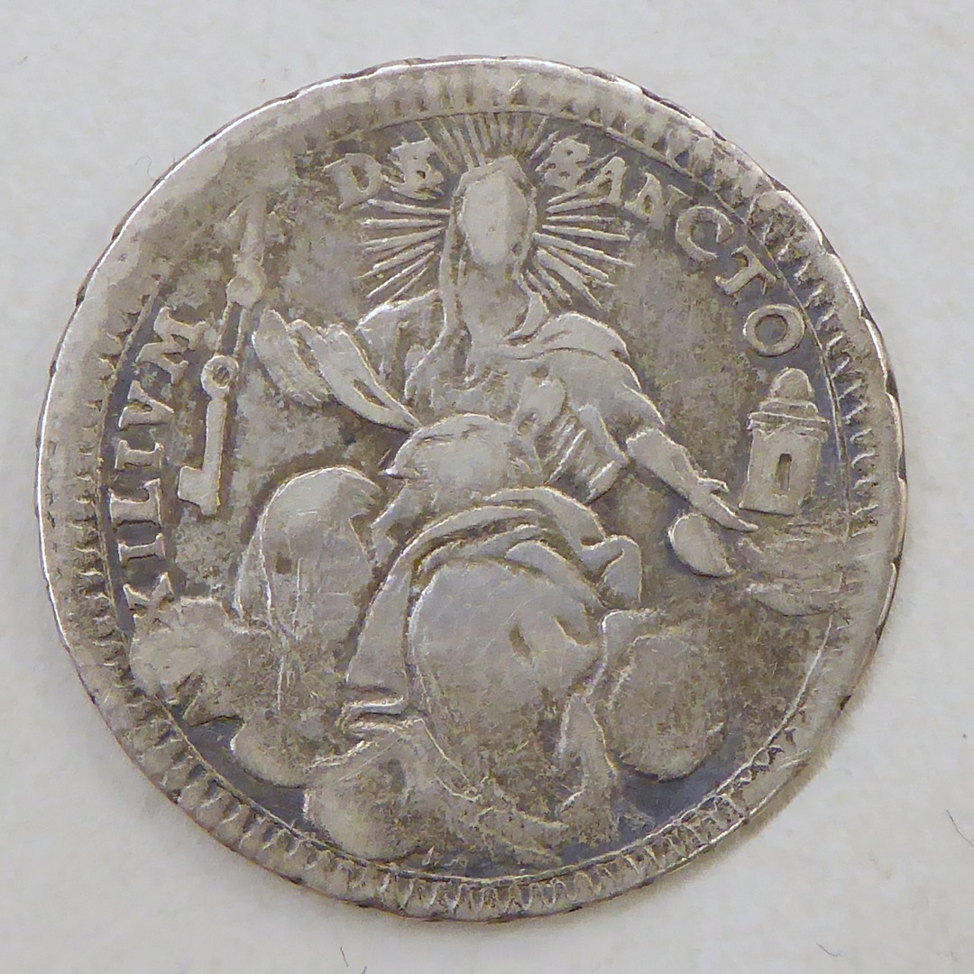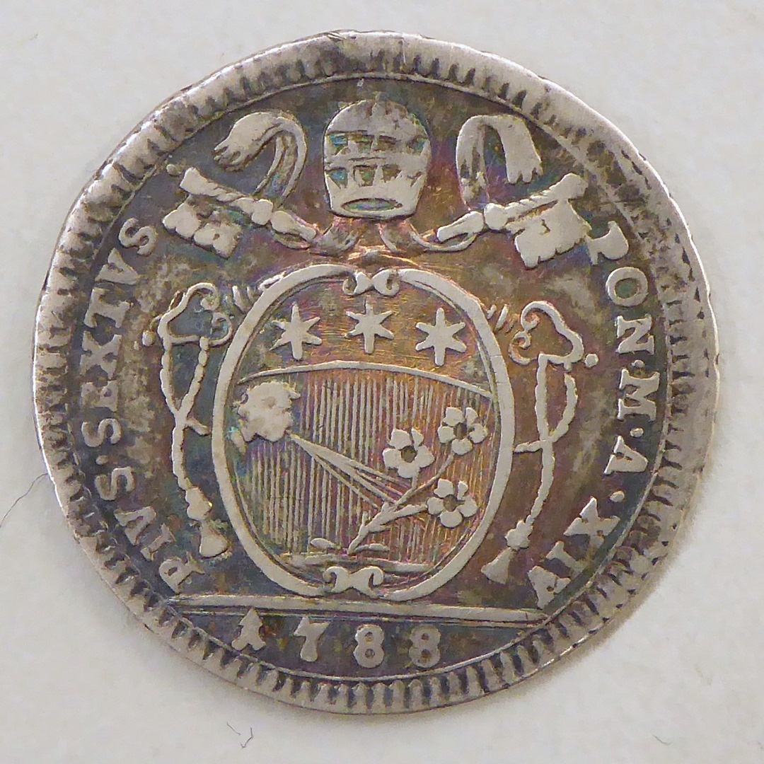 Halve scudo paus Pius VI met wapen, kz. allegorische vrouw met sleutels en toren