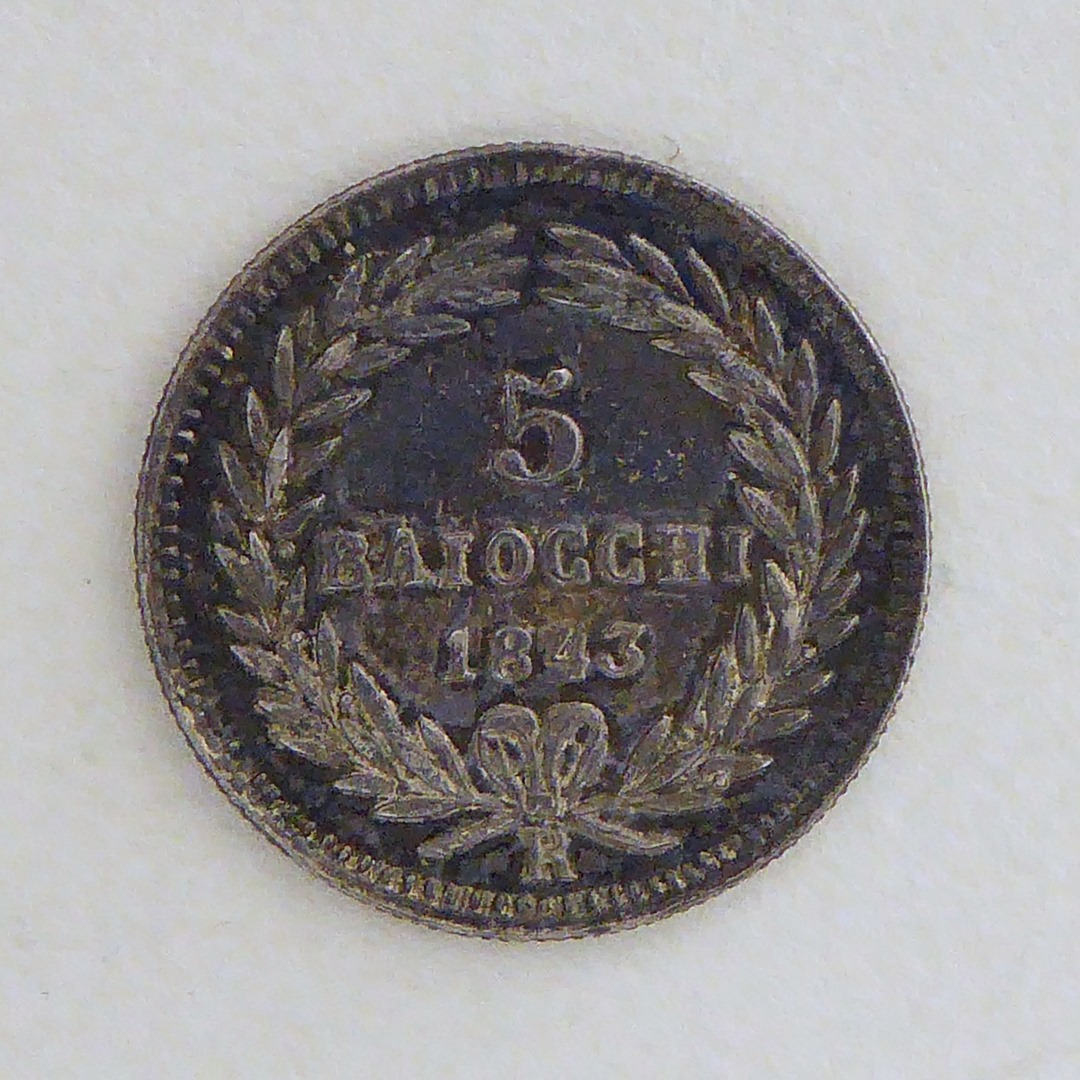vz.: GREGOR. XVI. PON. M. A. XIII. kz.: 5/ BAIOCCHI/ 1843