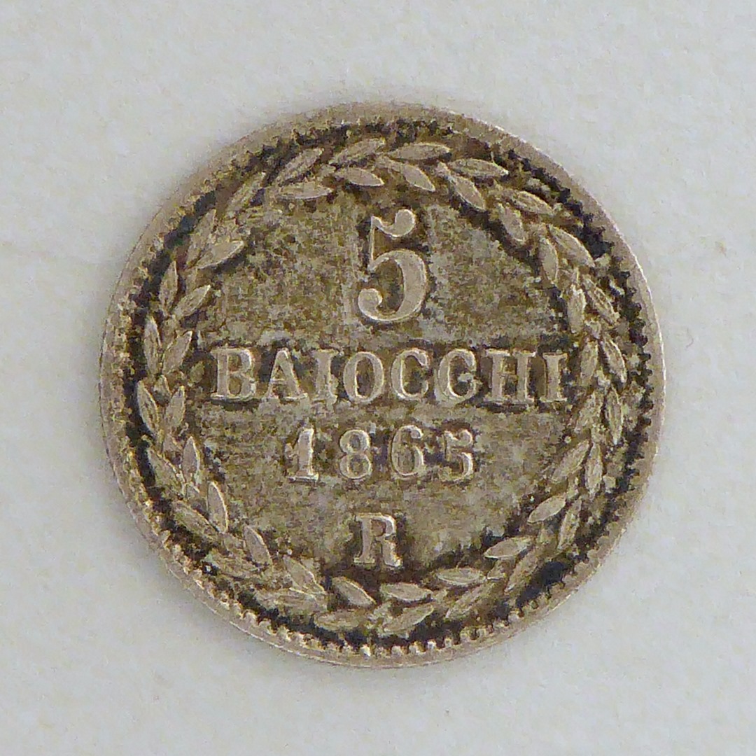 vz.: PIVS. IX. PON. MAX. A. IXI. kz.: 5/ BAIOCCHI/ 1865/ R