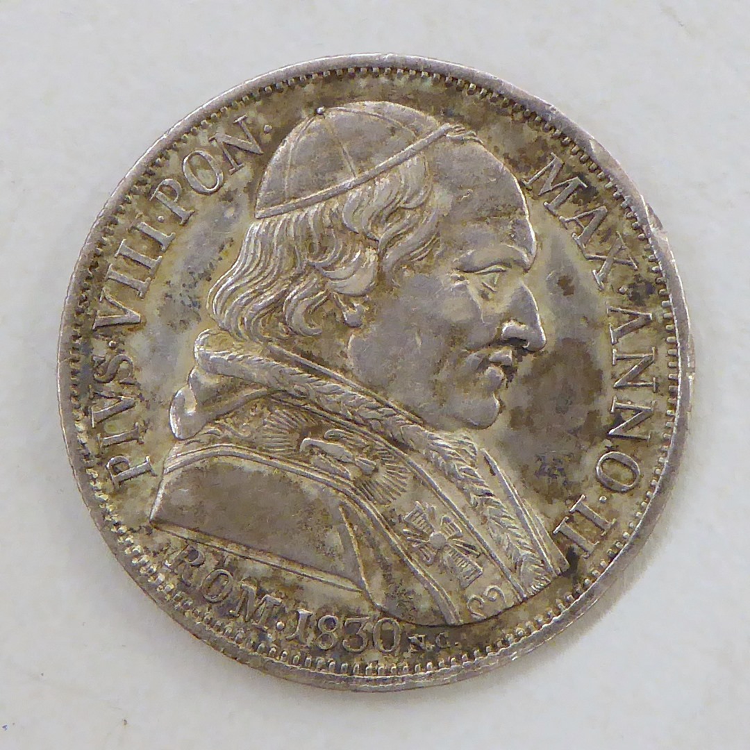 Testone met portret paus Pius VIII, kz. St. Exuperantius en St. Sperandia