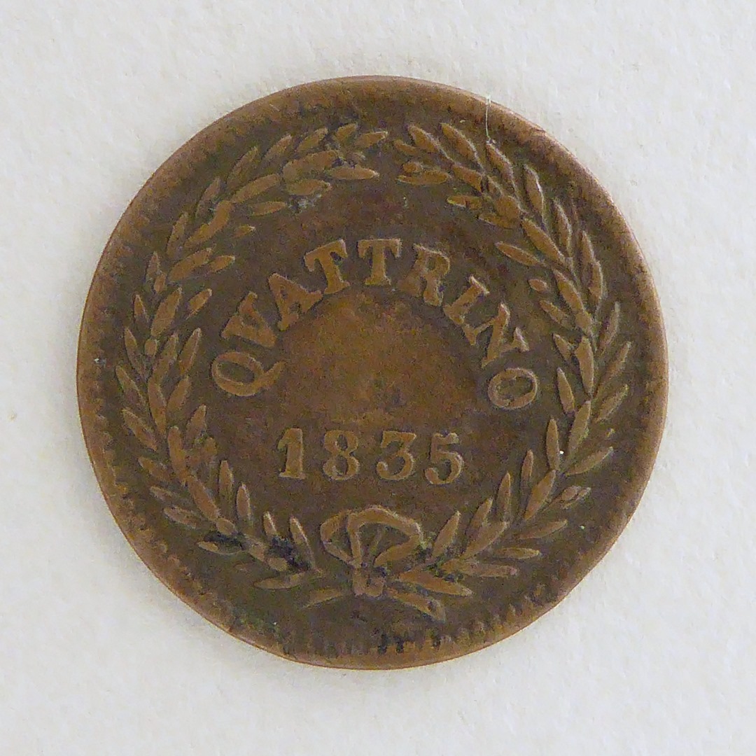vz.: GREGORIVS. XVI. PONT. MAX. AN. V. kz.: QVATTRINO/ 1835