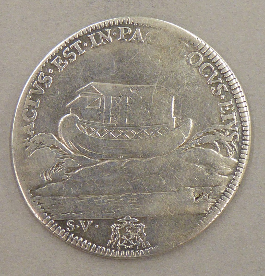 Halve piaster met portret paus Innocentius XII, kz. ark van Noach, t.g.v. Vrede van Rijswijk