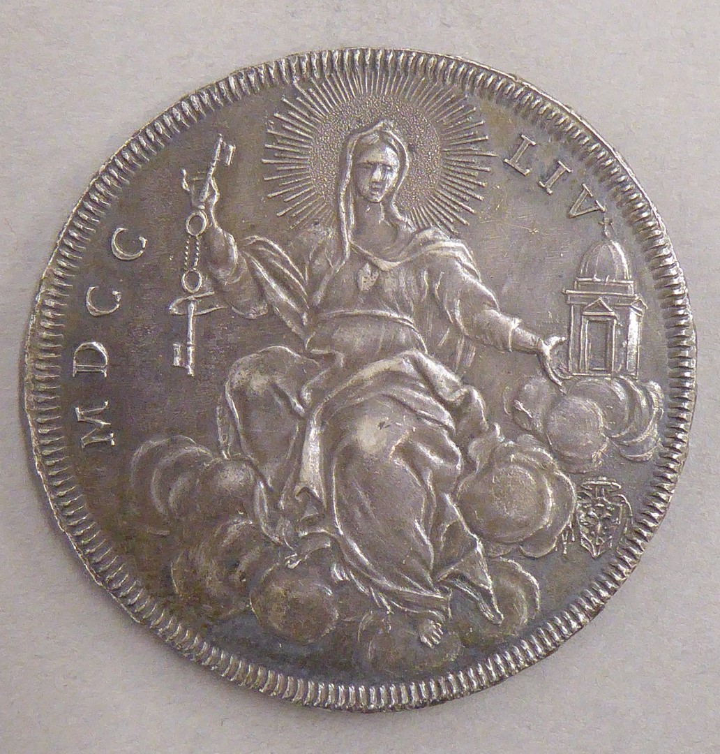 Scudo met portret paus Benedictus XIV, kz. allegorie op de kerk