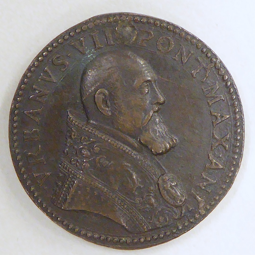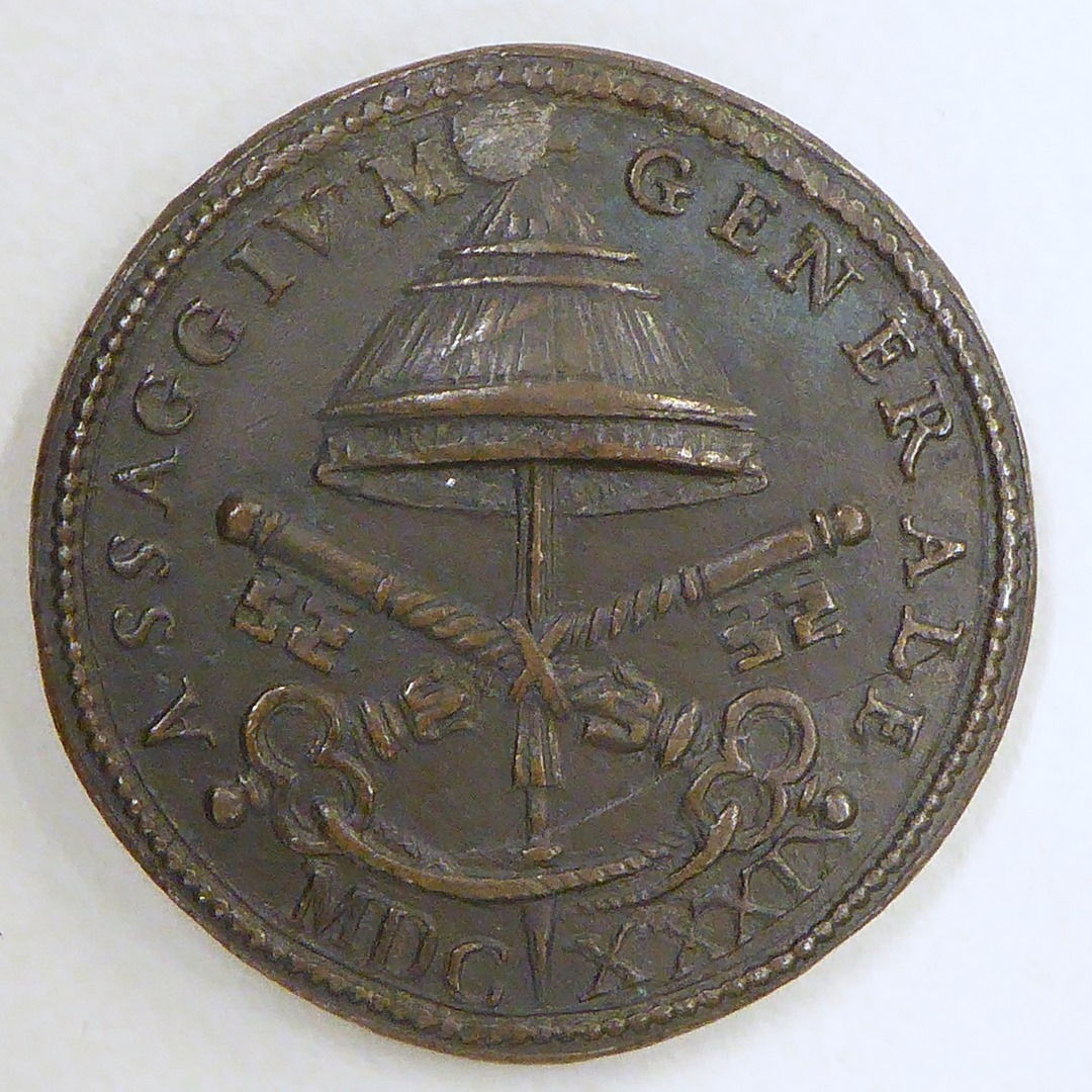 Pauspenning met portret paus Urbanus VIII (1623-1644), kz. gekruiste sleutels en parasol