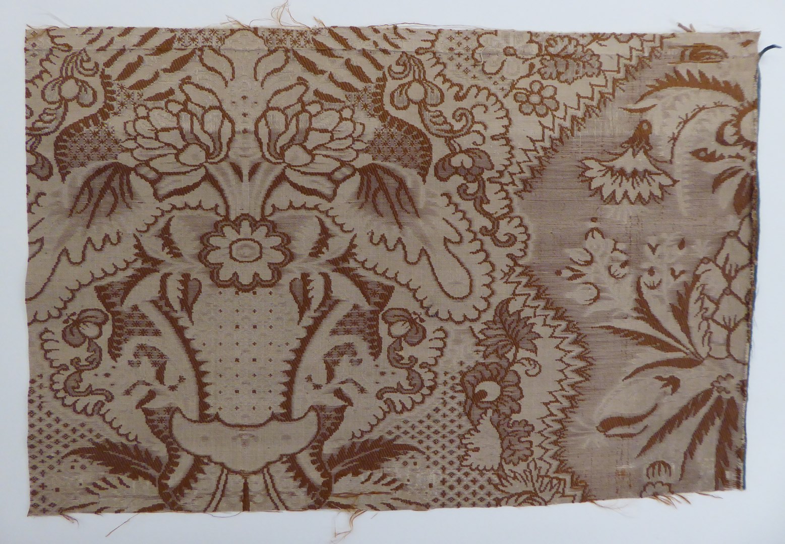 Crème lampas met crème/bruin palmblad-, granaatappelmotief