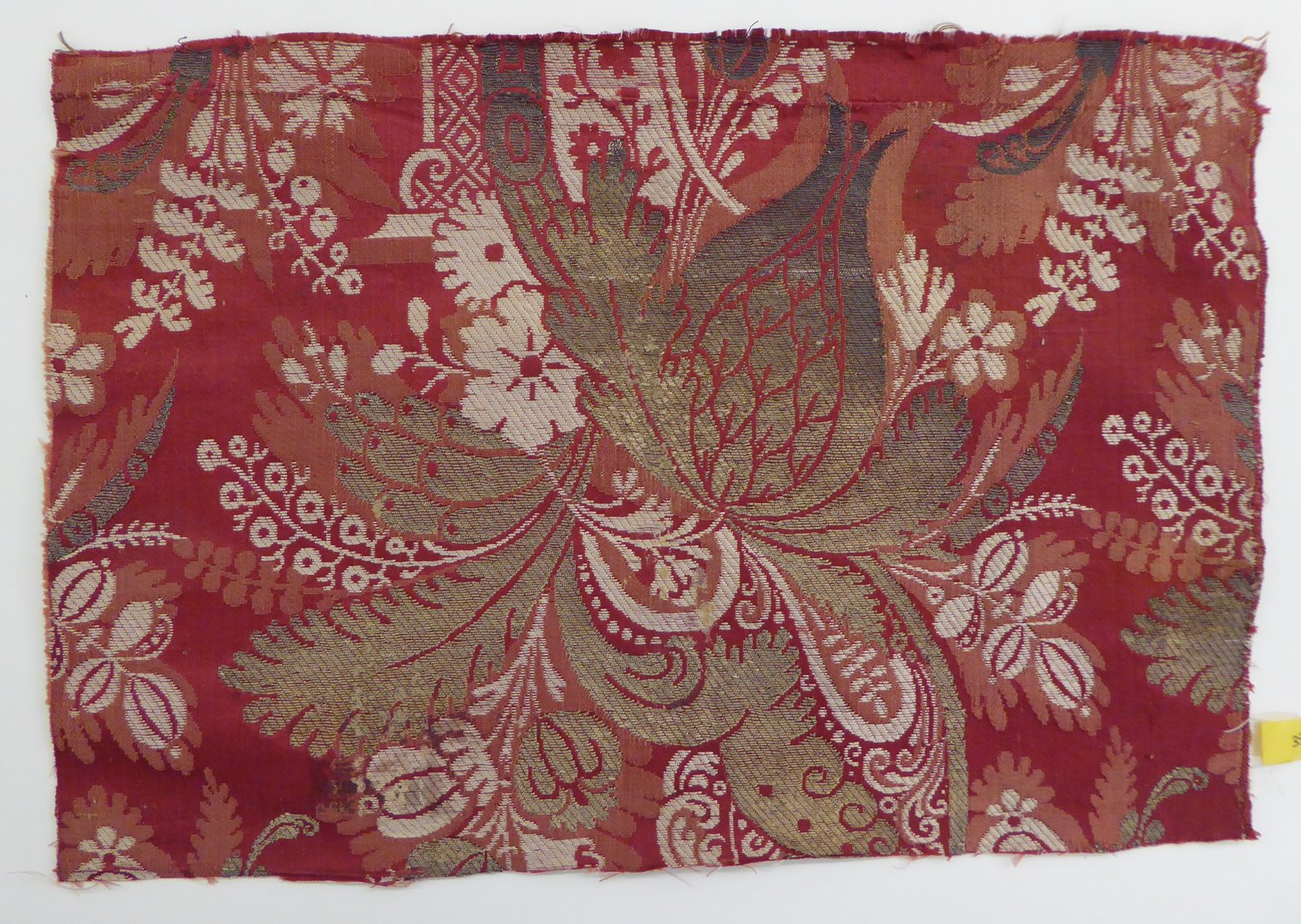 Rood-roze lampas met gestileerd bloemmotief