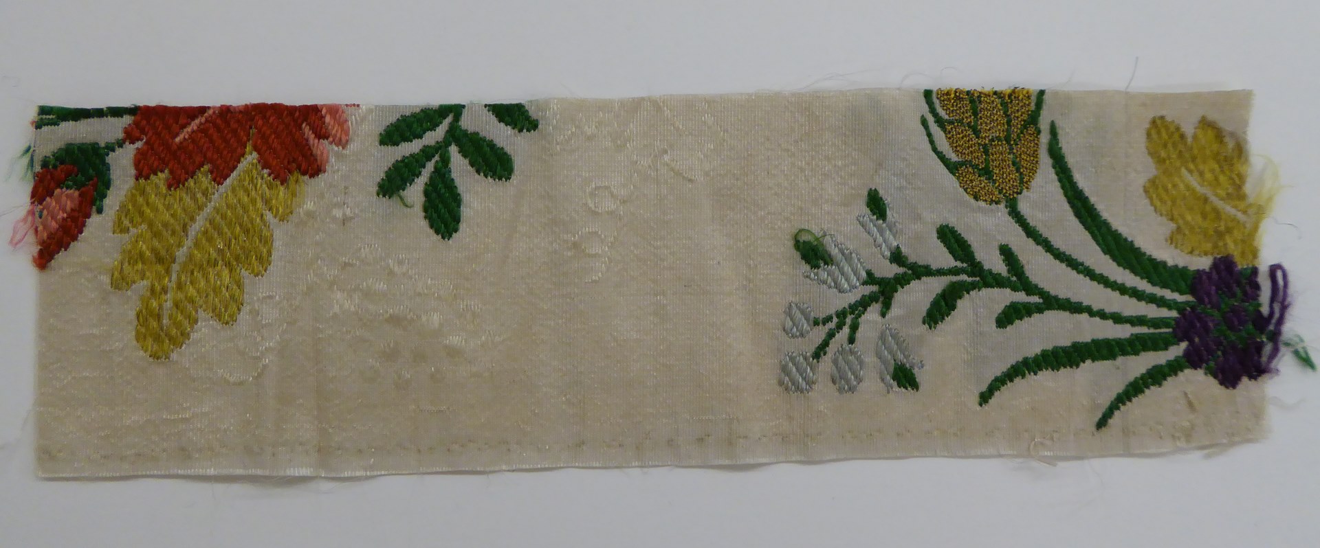 Wit weefsel met veelkleurig floraal motief