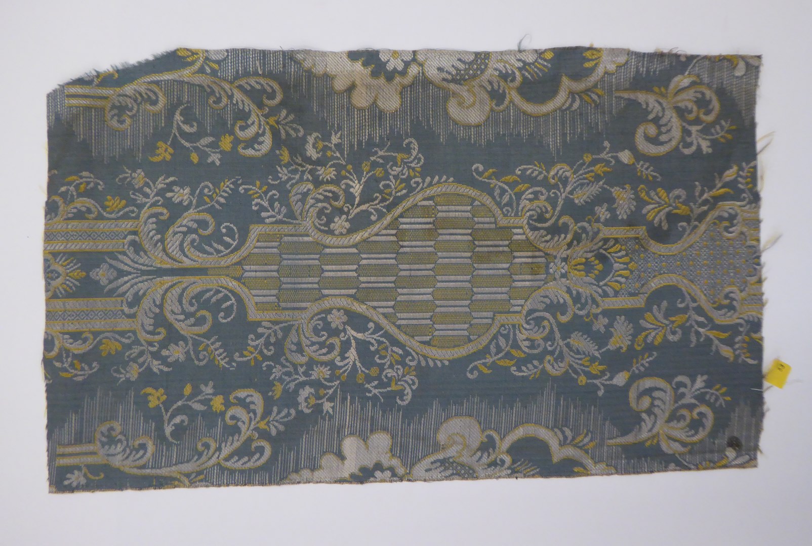 Lichtblauwe lampas met geel-witte florale motieven