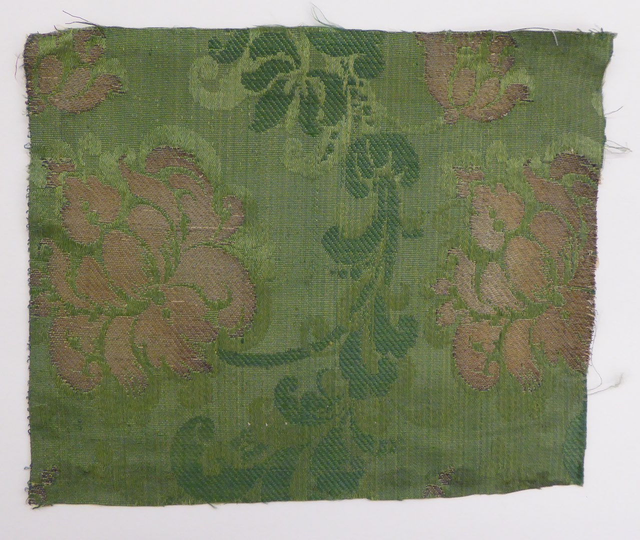 Groen brochéweefsel met grote bloemmotieven