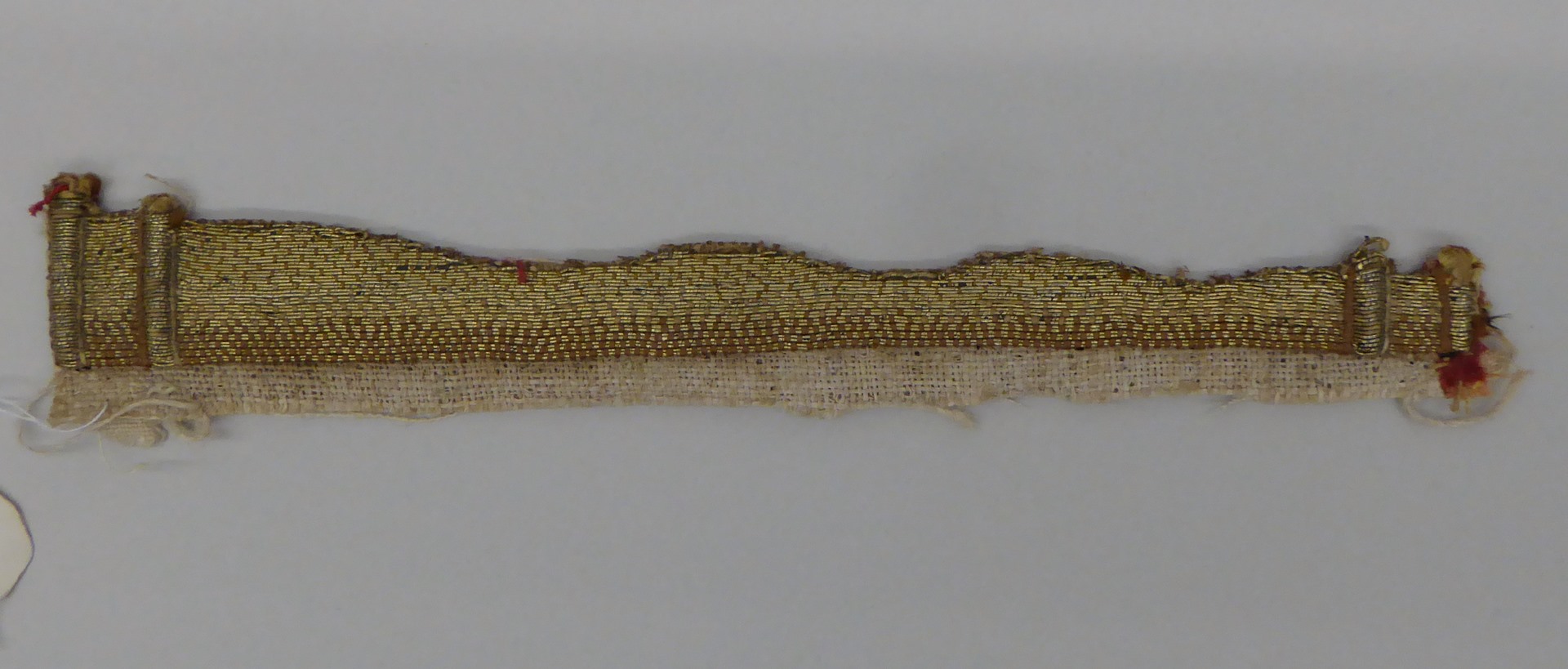 Katoenen weefsel met gouddraad, onderdeel van aurifries(?)