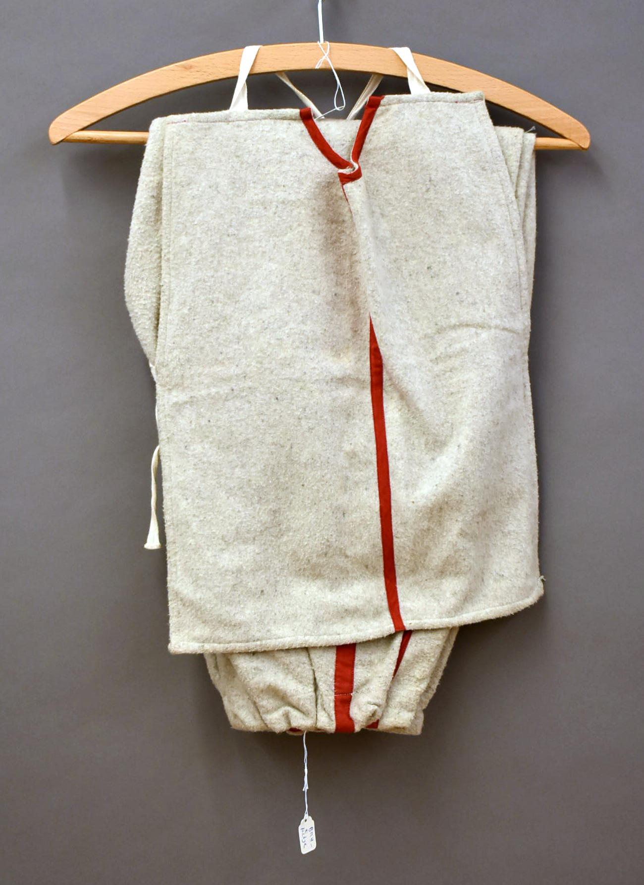 Kleding kindsheid, grijs plastron (hesje), rood afgebiesd