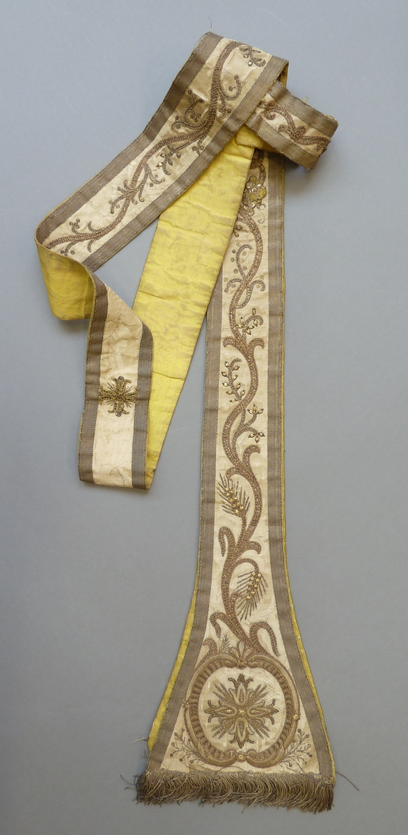 Witte stola met geborduurd leliekruis, korenaren en druivenranken