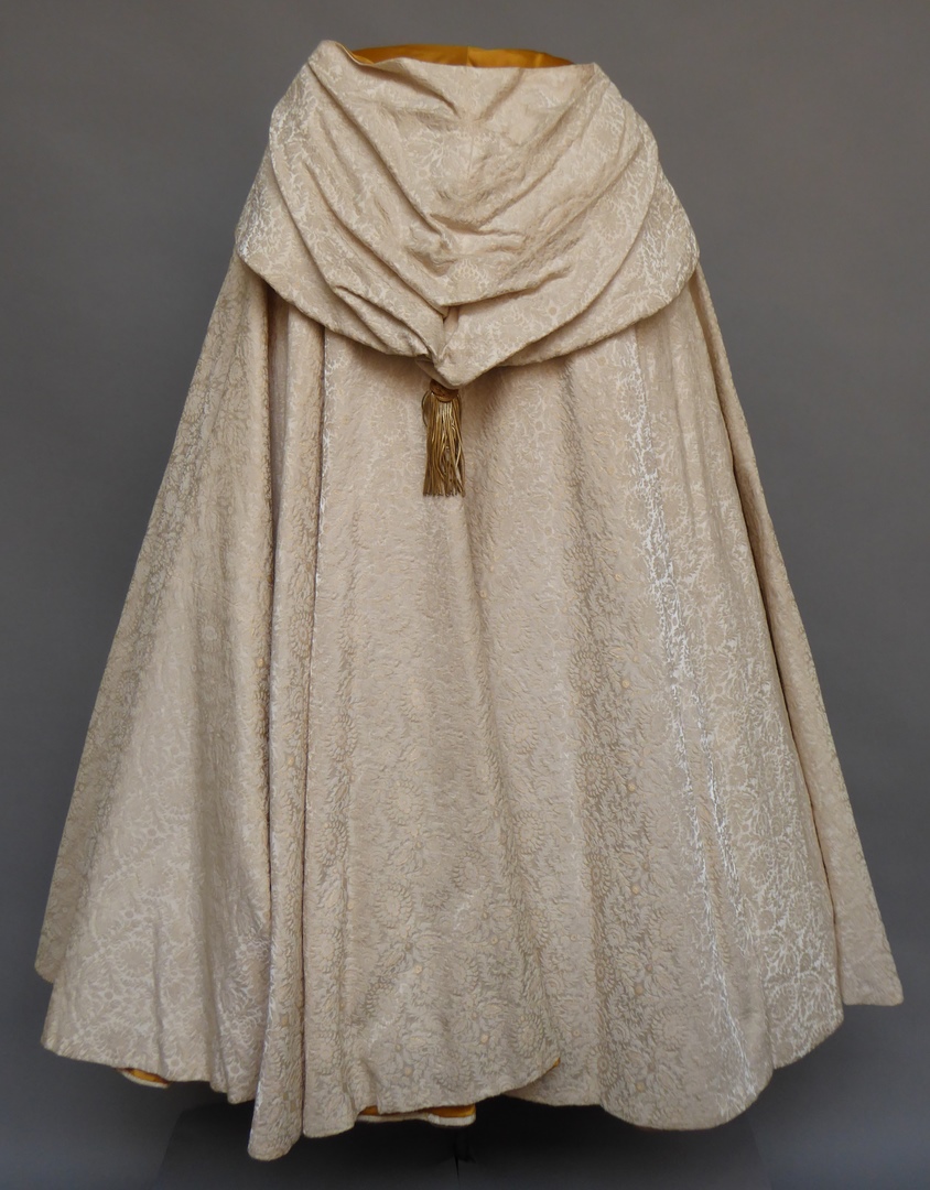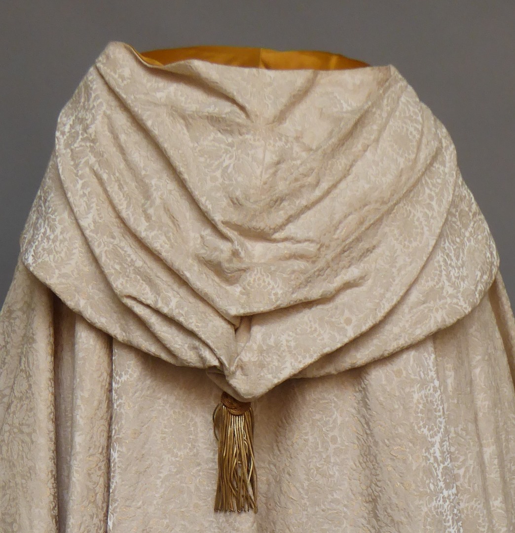Witte koorkap met capuchon en schelpensluiting
