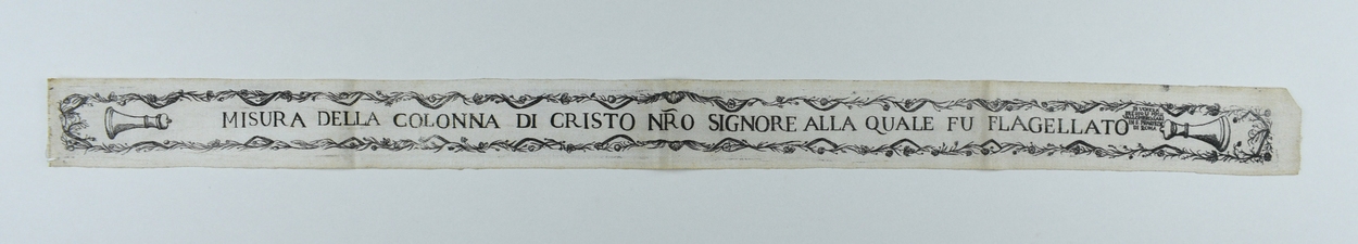 Weefsel met "Misura della colonna di Cristo ..." (Italiaans), 'afmeting van de zuil van Christus onze Heer waaraan Hij gegeseld werd'