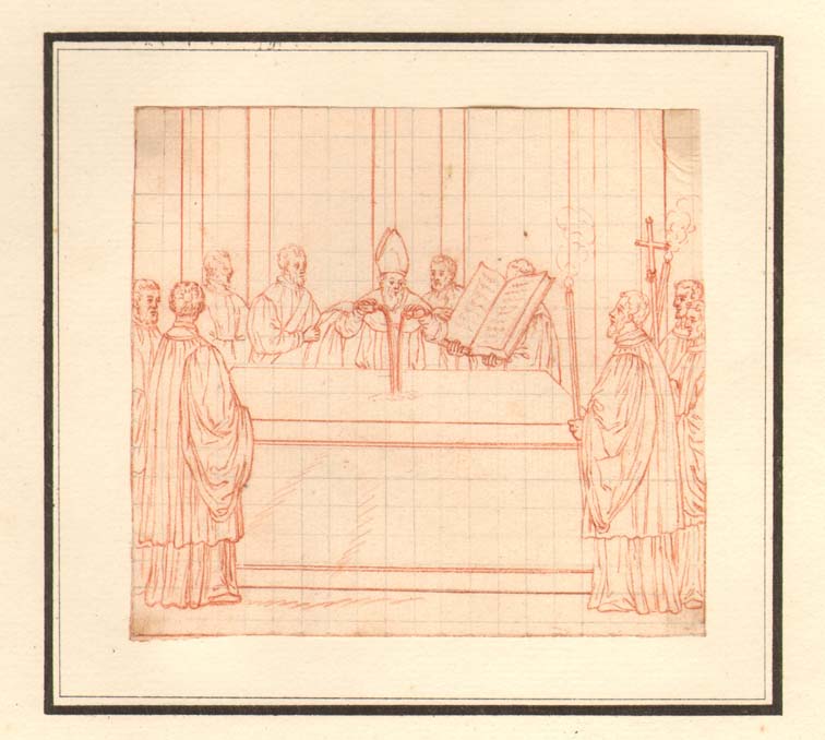 Bisschop giet olie en zalf over de tafel van het altaar
