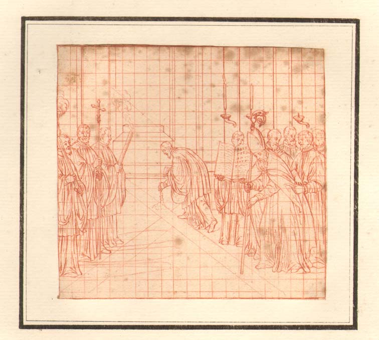 Bisschop schrijft alfabet in gestrooide as