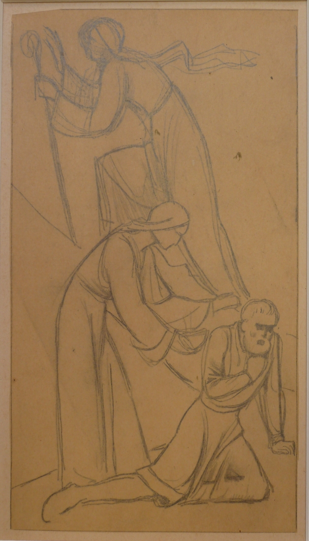 Schets drie figuren, gelijk aan BMH te190.14a, geveldecoratie Rozenkranskerk te Amsterdam