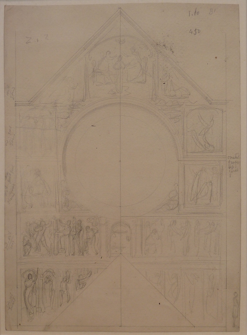 Gedetailleerde indelingsschets geveldecoratie Rozenkranskerk te Amsterdam