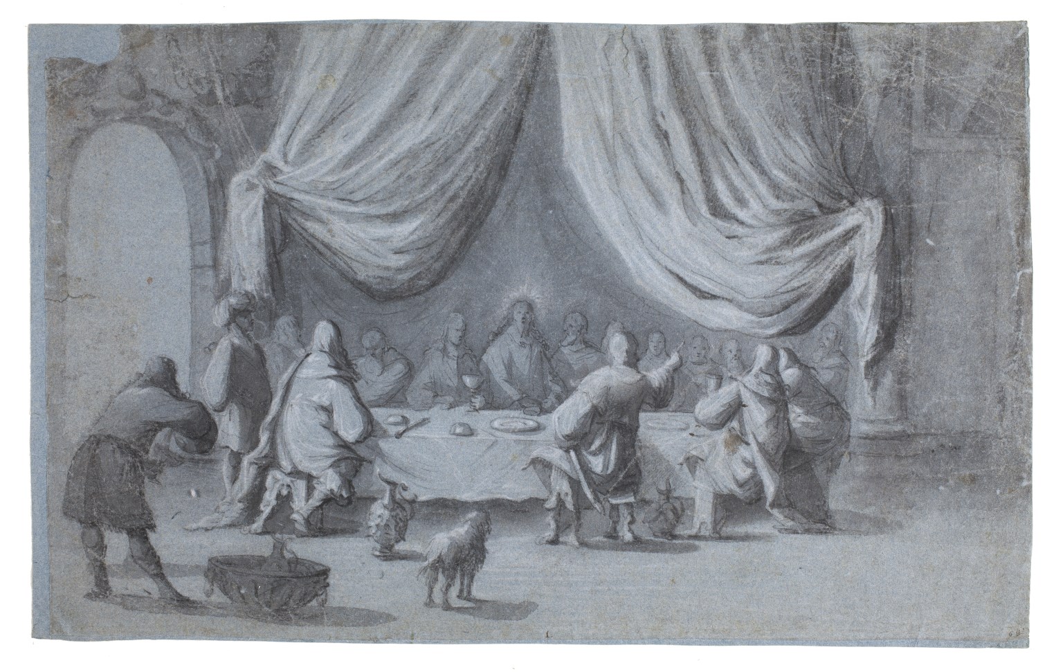 Laatste avondmaal. Middenonder (pen en bruine inkt): 1.; rechtsonder (pen en bruine inkt): 6 fl