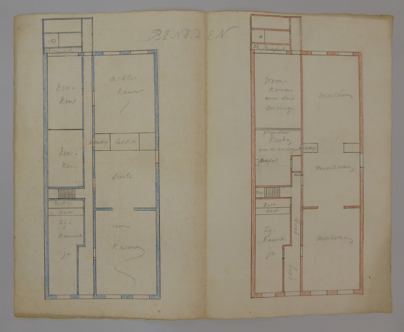 Schetsontwerp plattegrond voor nieuwbouw van het Bisschoppelijk Museum Haarlem, benedenverdieping