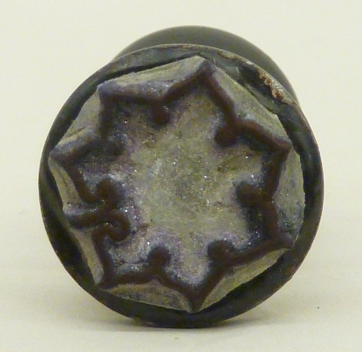Stempel in bloemvorm voor bibliotheeknummers Bisschoppelijk Museum Haarlem