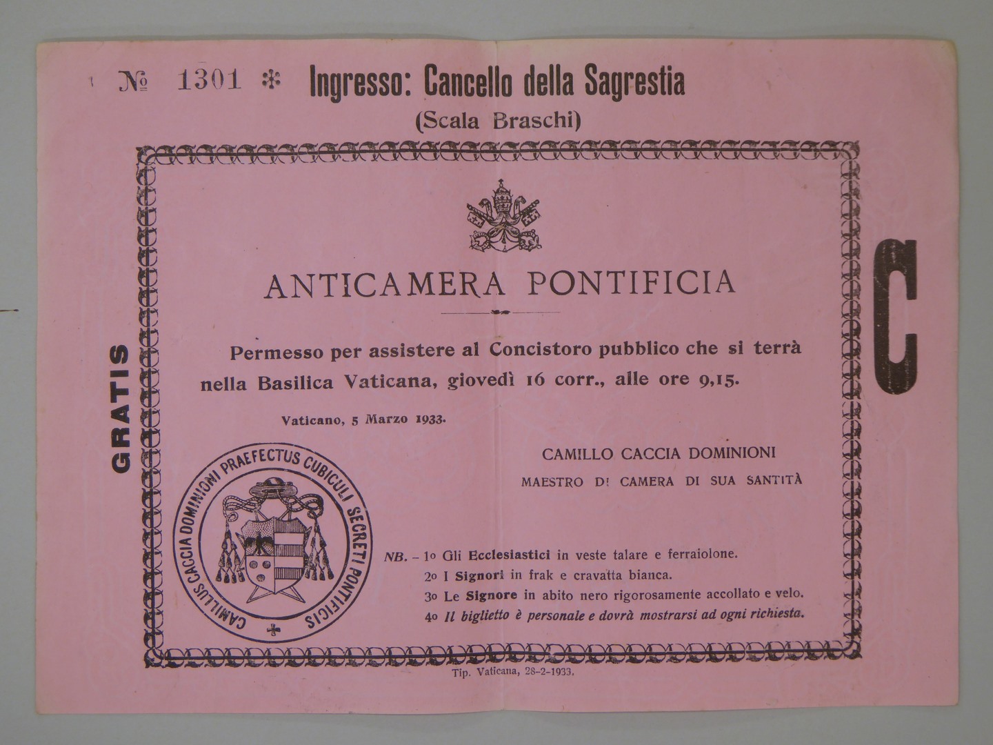 Toestemming bijwonen openbaar consistorie in de St. Pieter, donderdag 16 maart, 1933, rose