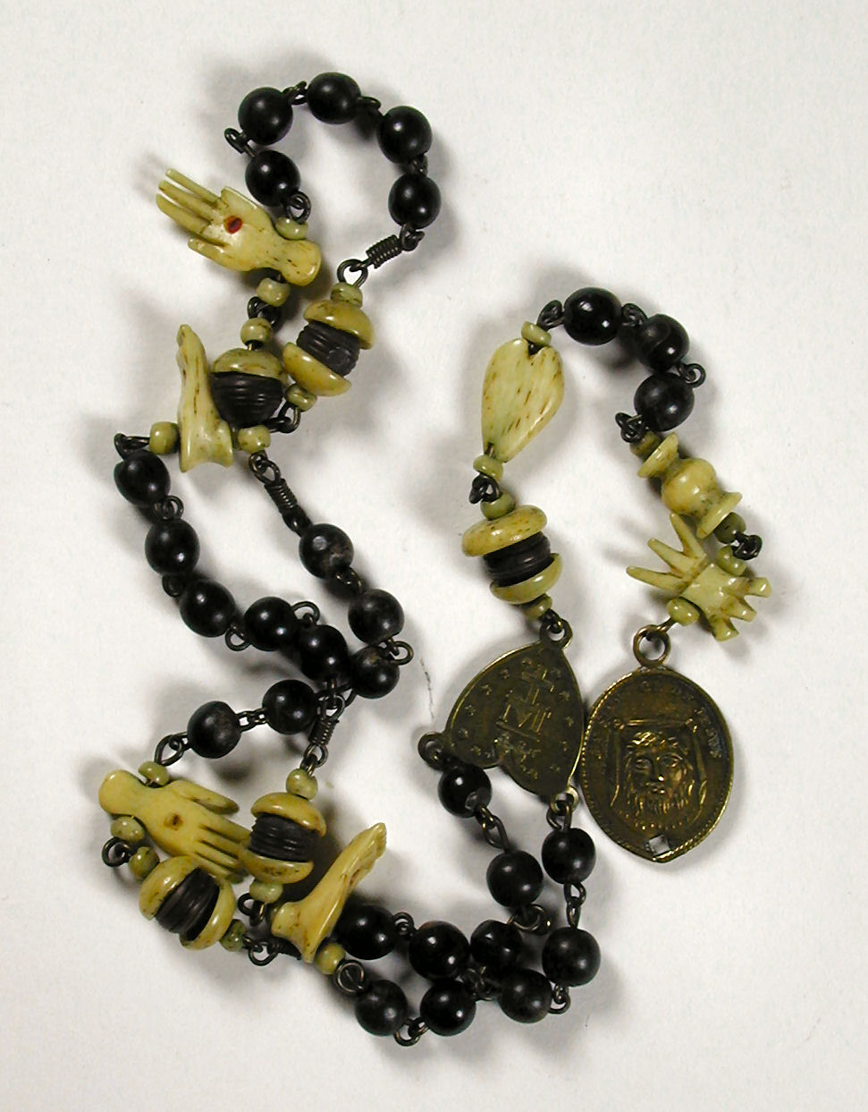 Rozenkrans van de heilige vijf wonden met messing plaatje tonende de wonderdadige medaille