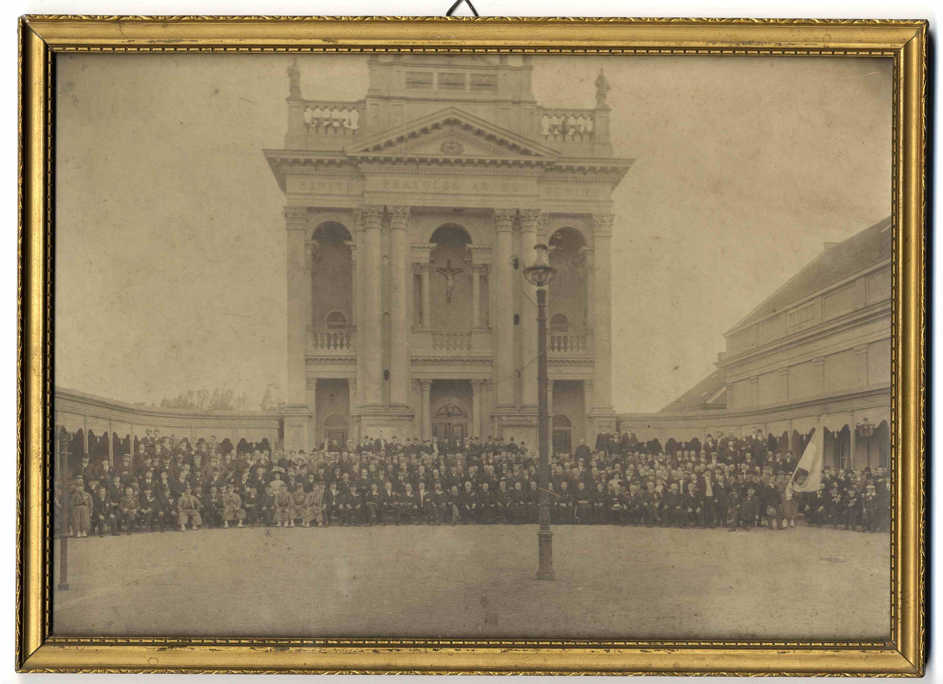 Foto deelnemers zouavenreünie 15 aug. 1909, met o.a. J.C.F.N. Streep, aangegeven met een kruisje