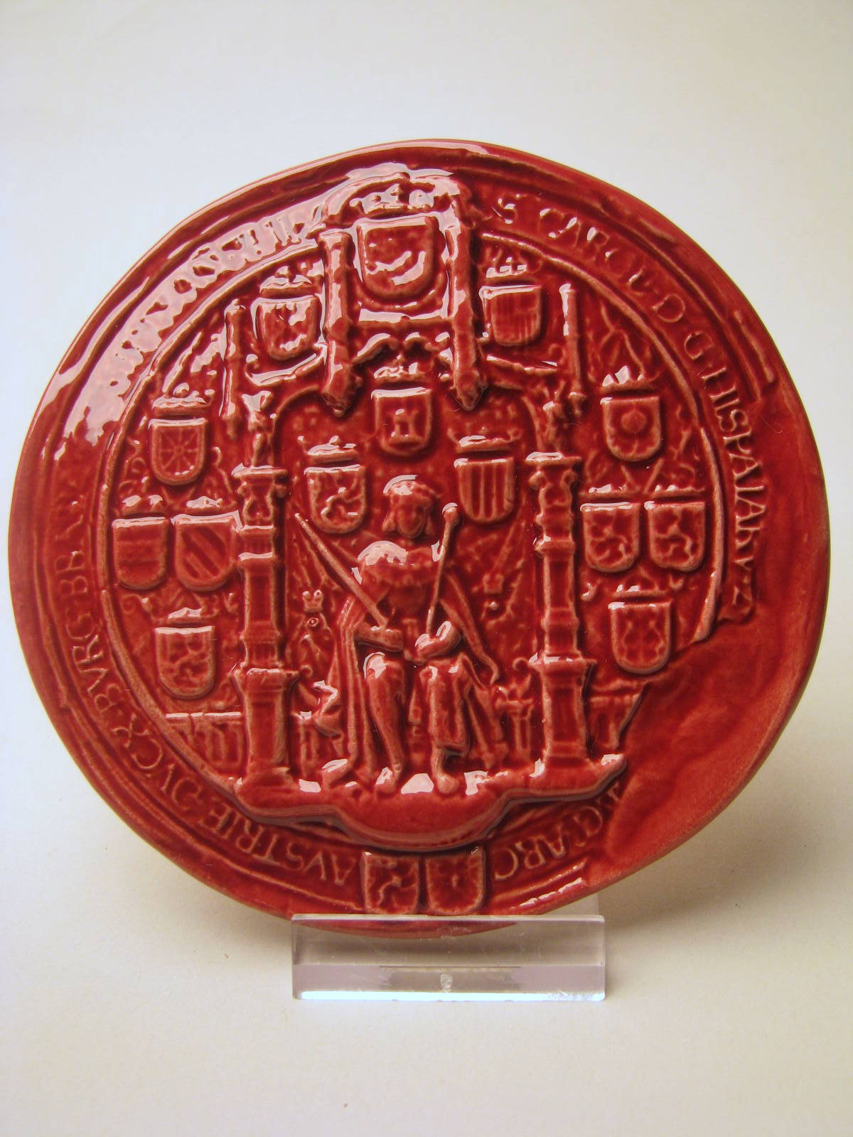 Rode plaquette, reproduktie van lakzegel van Karel V voor Privé Raad in 1515