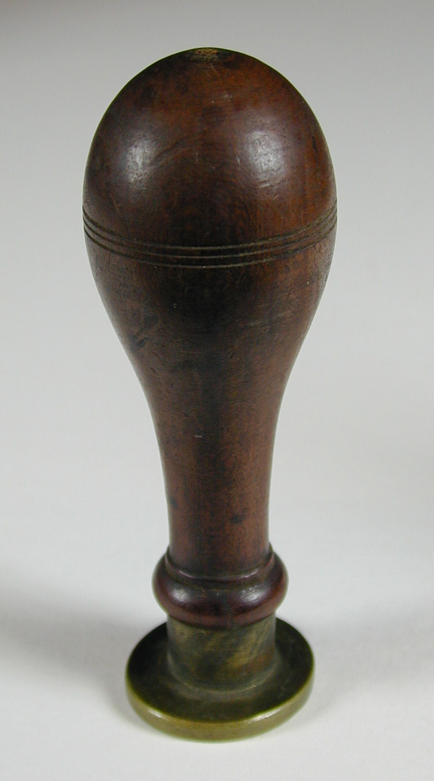 Zegelstempel gebruikt door Haarlemse bisschoppen sinds 1852: kruis en "S.W."