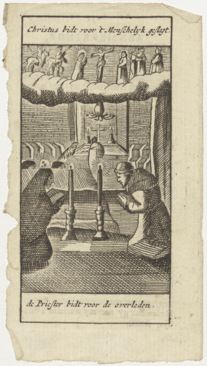 Priester bidt voor de overledenen, Christus bidt voor 't menselijk geslacht, kz. gebed;drukwerk;