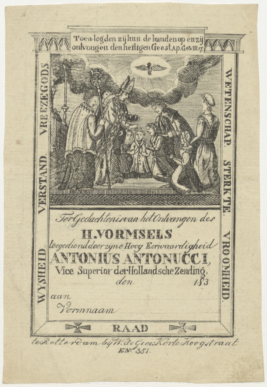 H. Vormsel toegediend door Antonius Antonucci, vice-superior der Hollandsche Zending