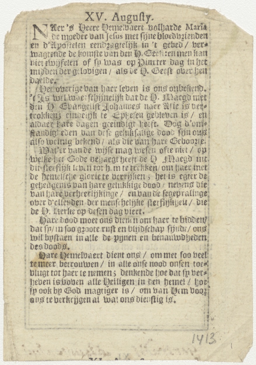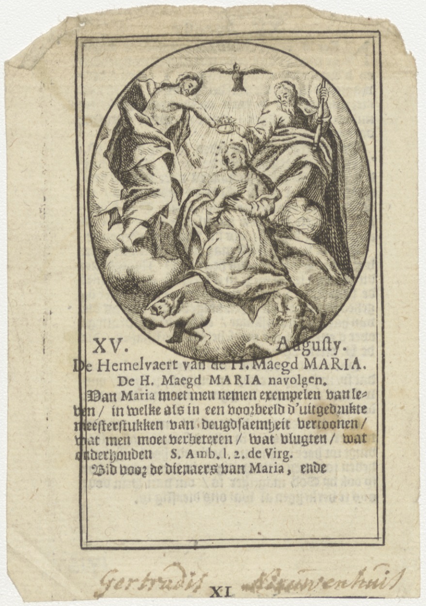 Hemelvaart van Maria met tekst, kz. Nieuwenhuis; levensbeschrijving