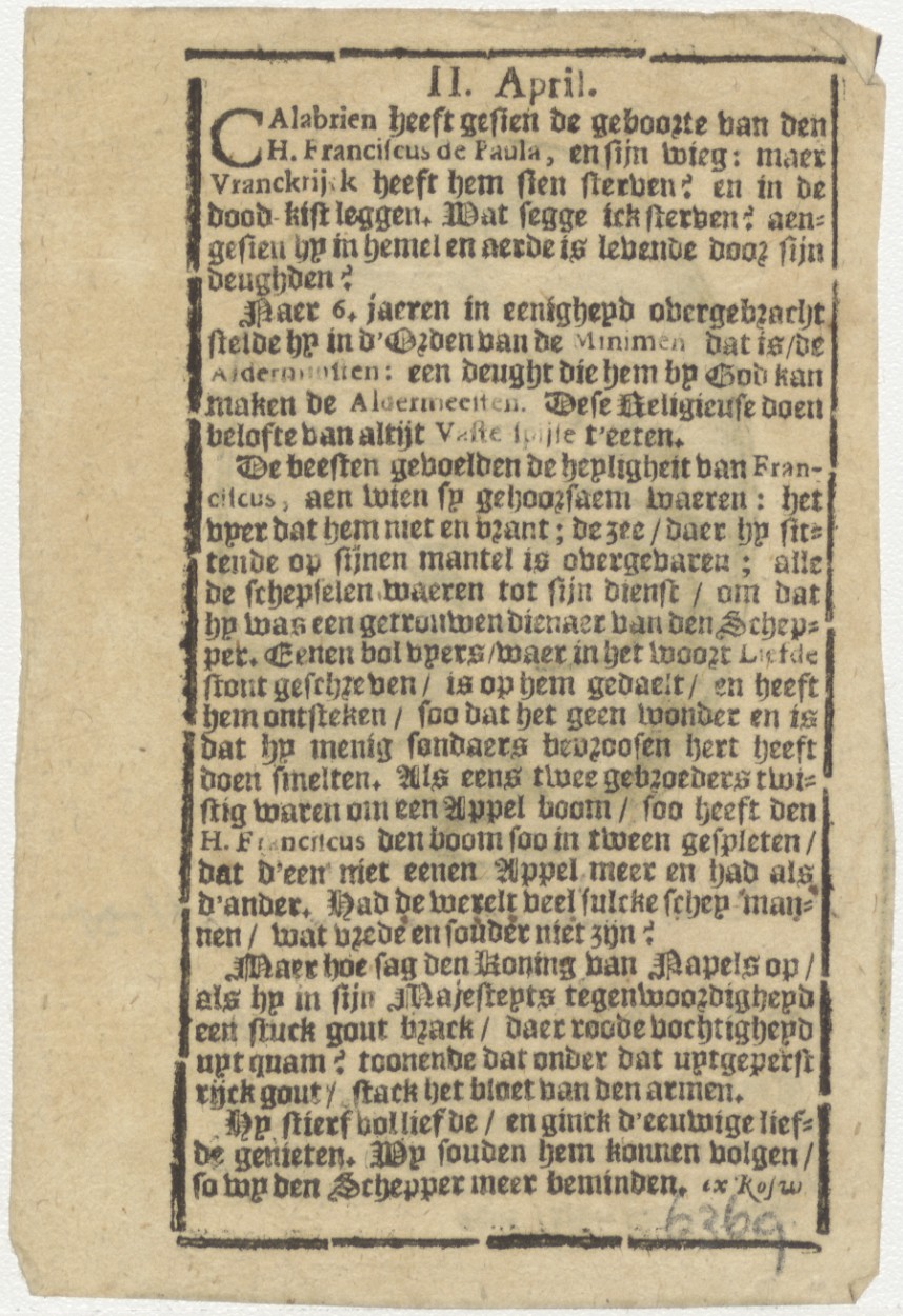 H. Franciscus de Paula (van Paola), kz. Pastoor; levensbeschrijving