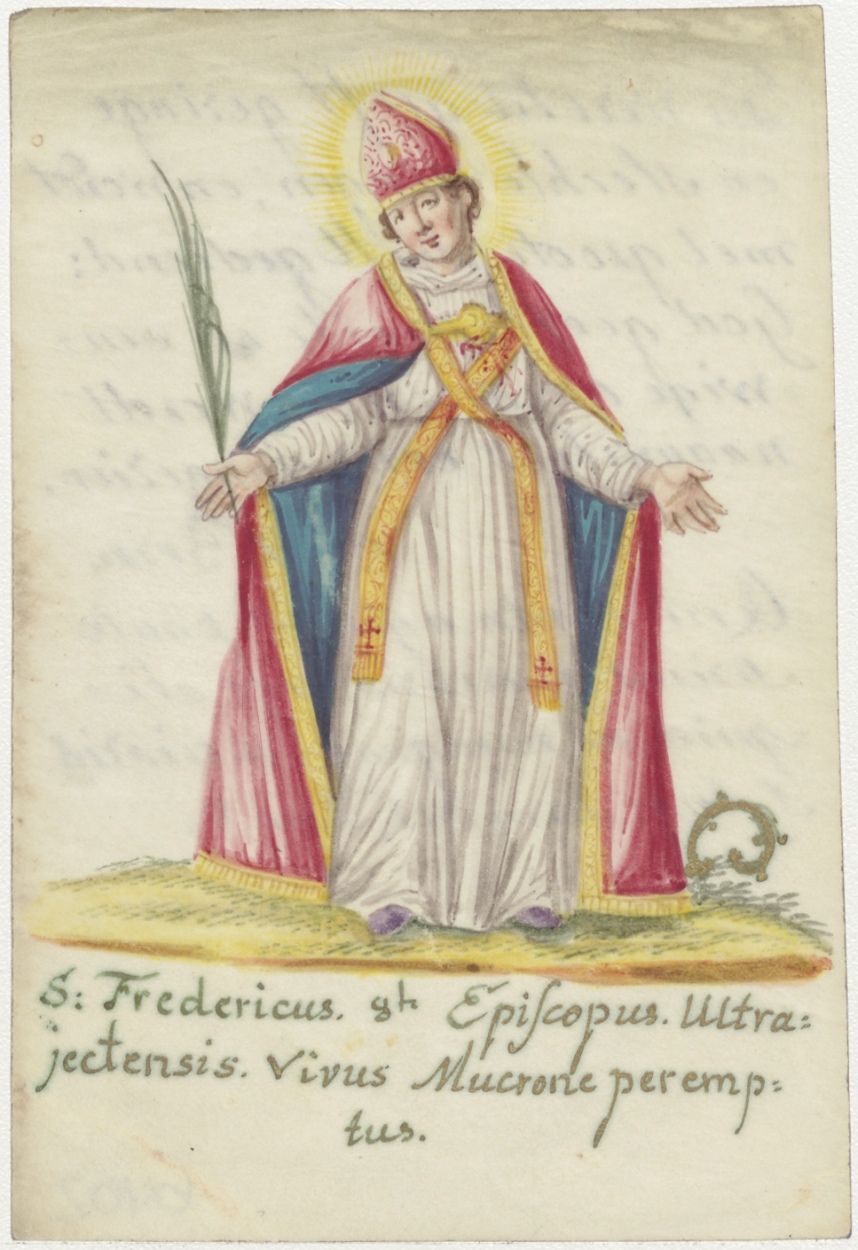 H. Fredericus, ingekleurd, kz. Gebed