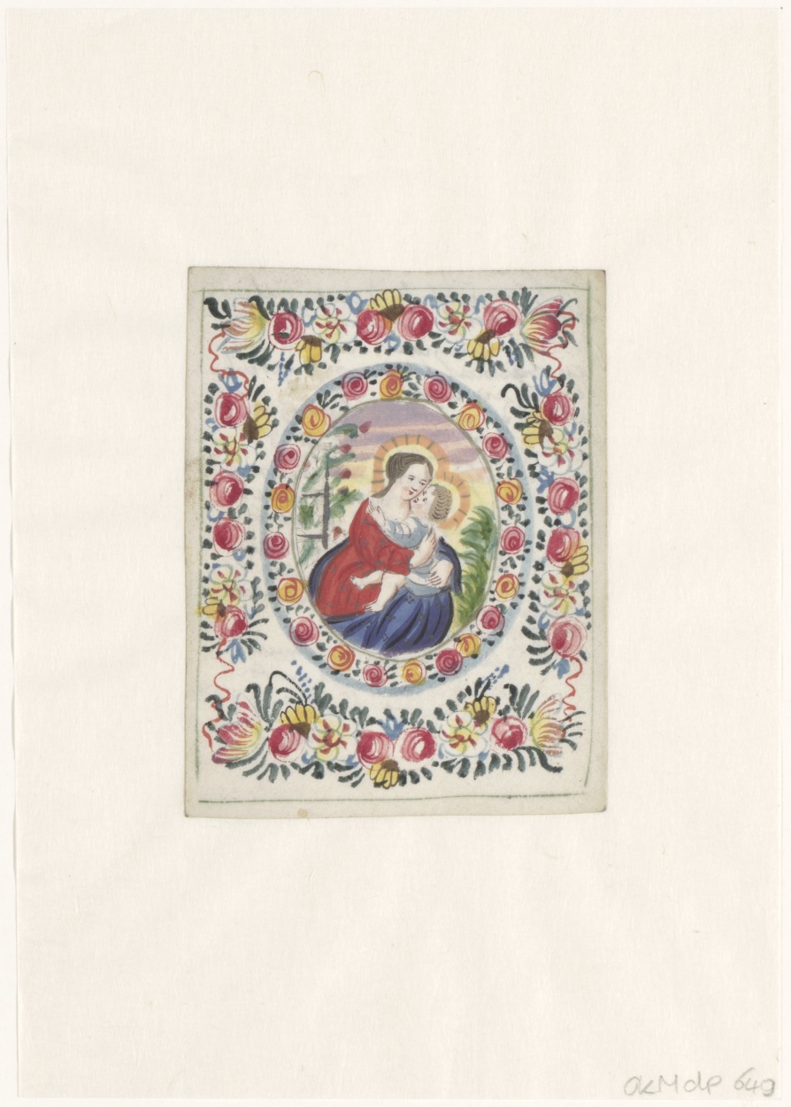 Maria met Christuskind, ingekleurd, kz. tekst;