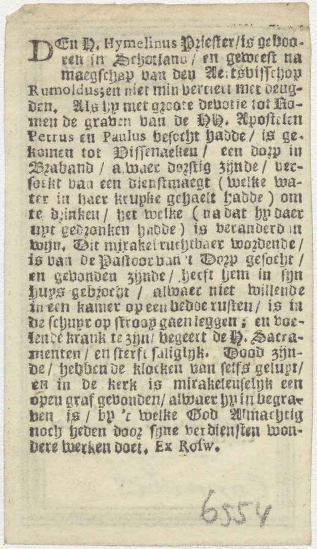H. Hymelinus, priester, kz. Cornelis; levensbeschrijving