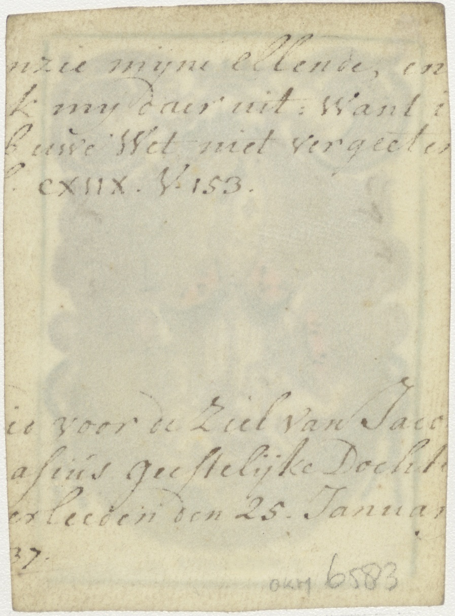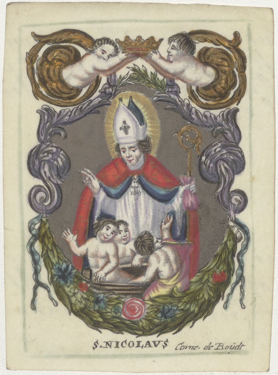H. Nicolaas, ingekleurd, kz. Religieus; 1737 (?) Fragment geestelijk dochter
