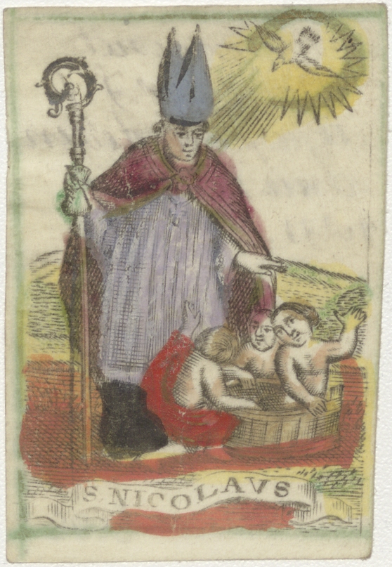 H. Nicolaas, ingekleurd, kz. Bid voor ziel De Jager (+1831)