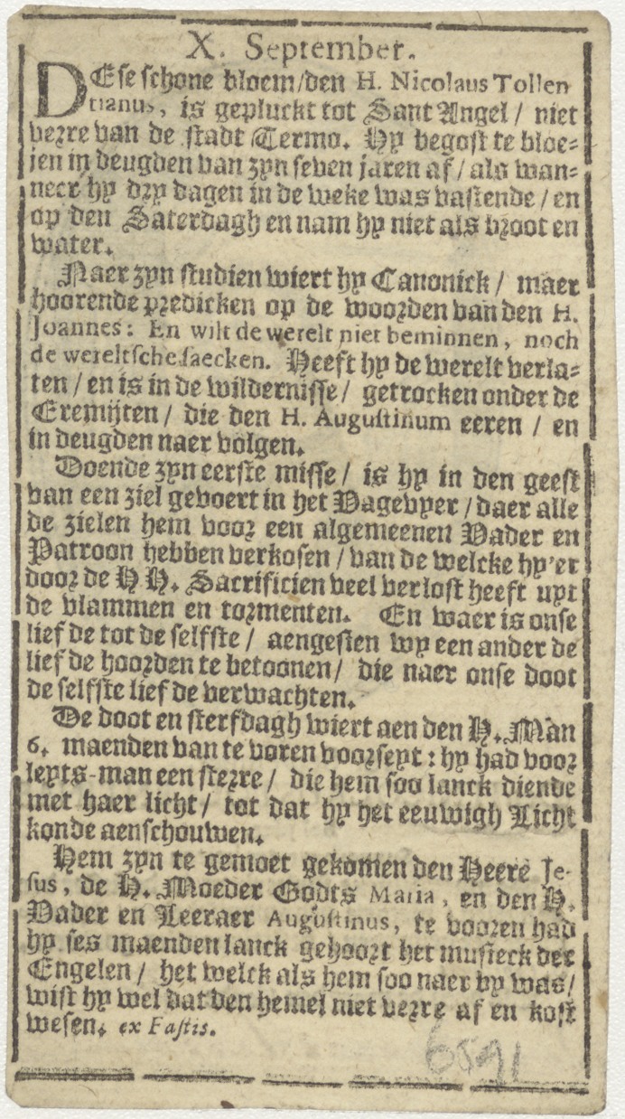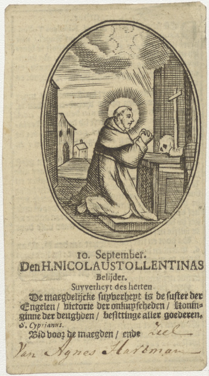 H. Nicolaas van Tolentina, kz. Bid voor ziel Agnes Hartman; levensbeschrijving