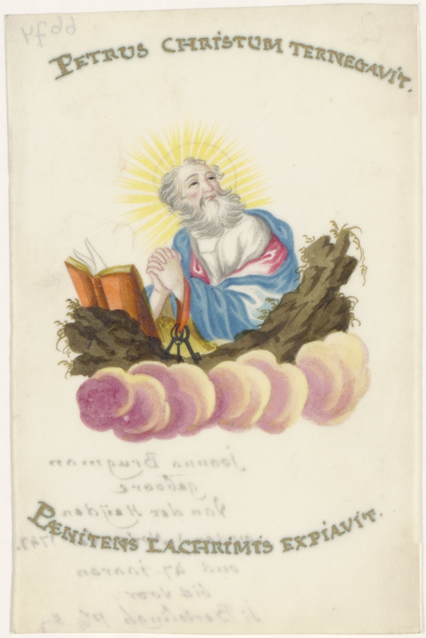 H. Petrus, ingekleurd, kz. Joanna Brugman, geboren van der Heijden oud 47 jaren (+1747); bid voor pastoor J. Bervelingh