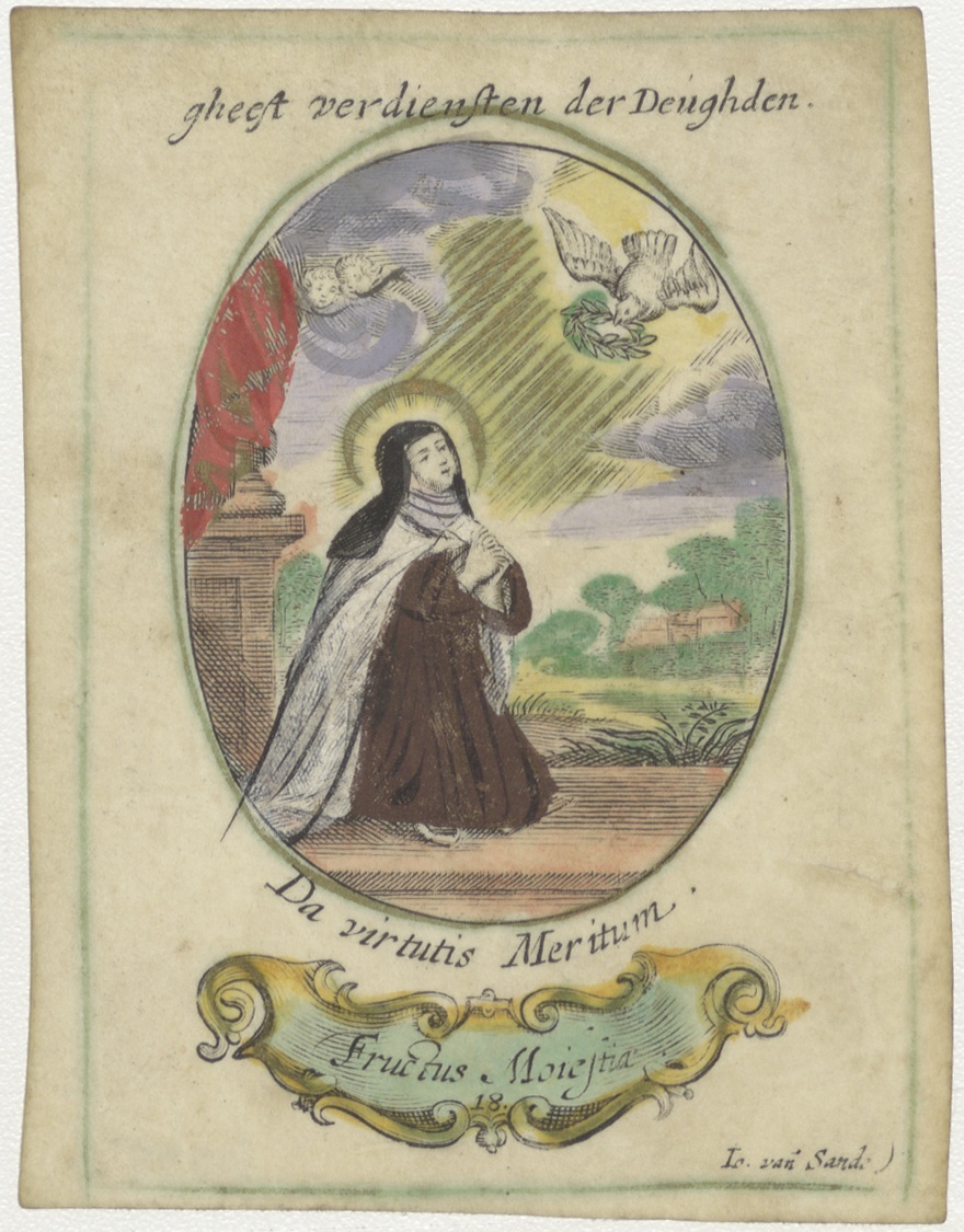H. Geest (serie): fructus moiestia (18), met H. Theresia, ingekleurd