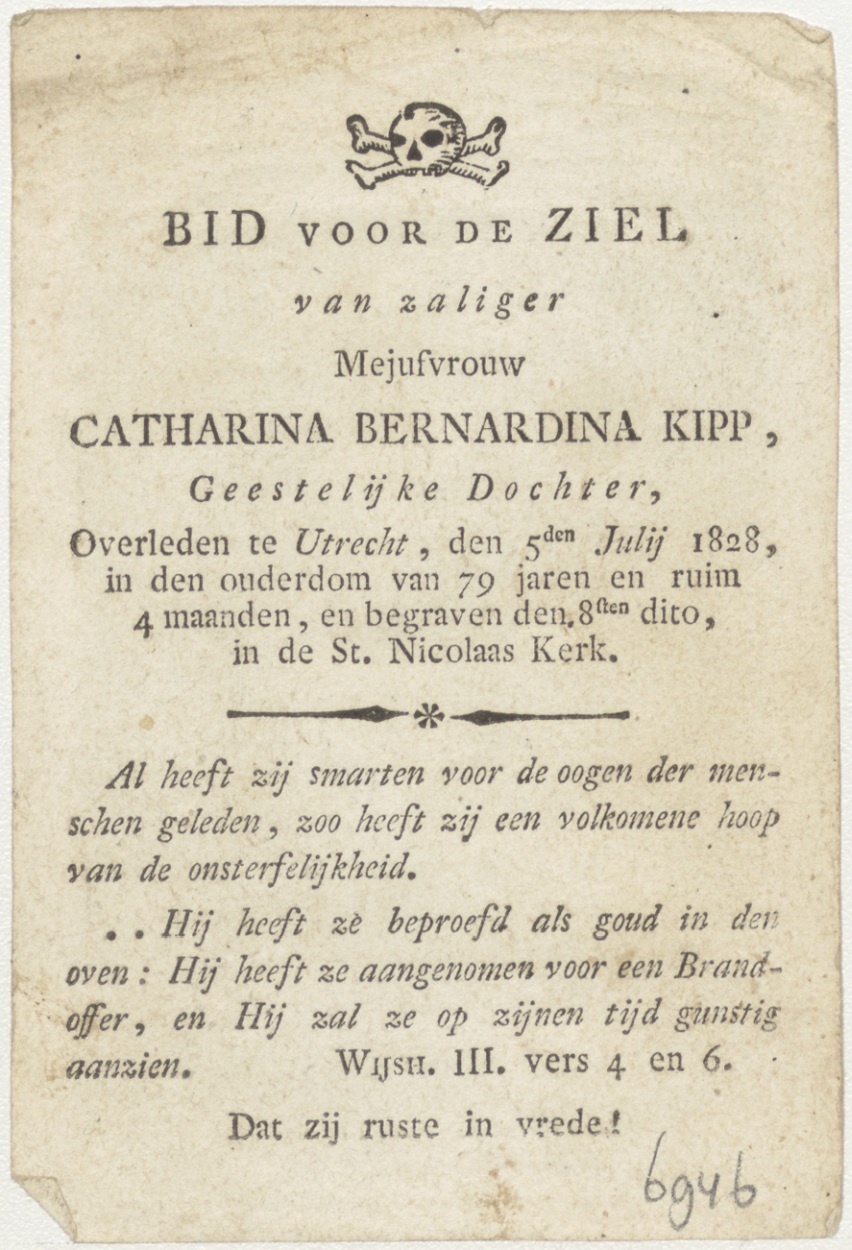 H. Thomas, kz. Religieus; bid voor ziel Catharina Kipp (+1828) geestelijk dochter, Utrecht