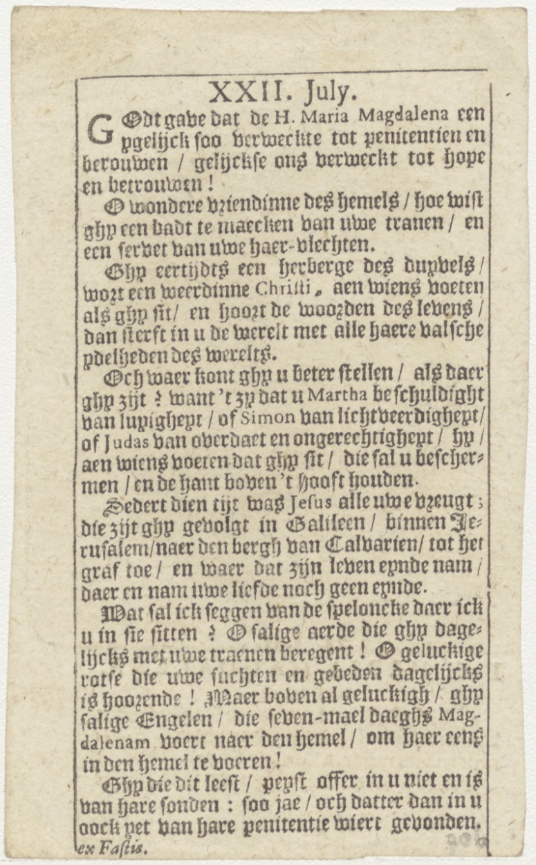 H. Maria Magdalena, naamfeest (22 juli), met gebed, met "Anna van Hardenbergh", kz. tekst