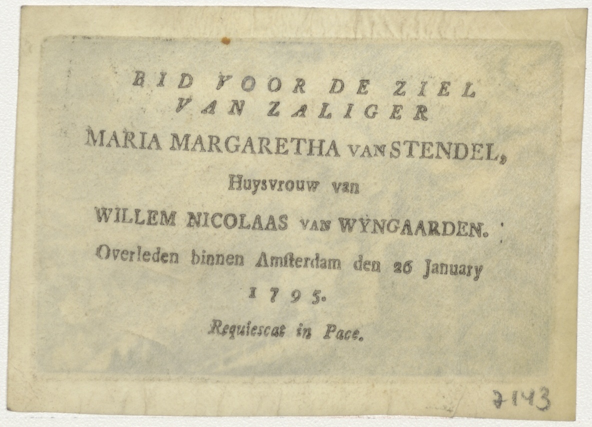 Mozes bidt op de berg, kz. Bid voor ziel Wijngaarden-van Stendel (+1795) Amsterdam