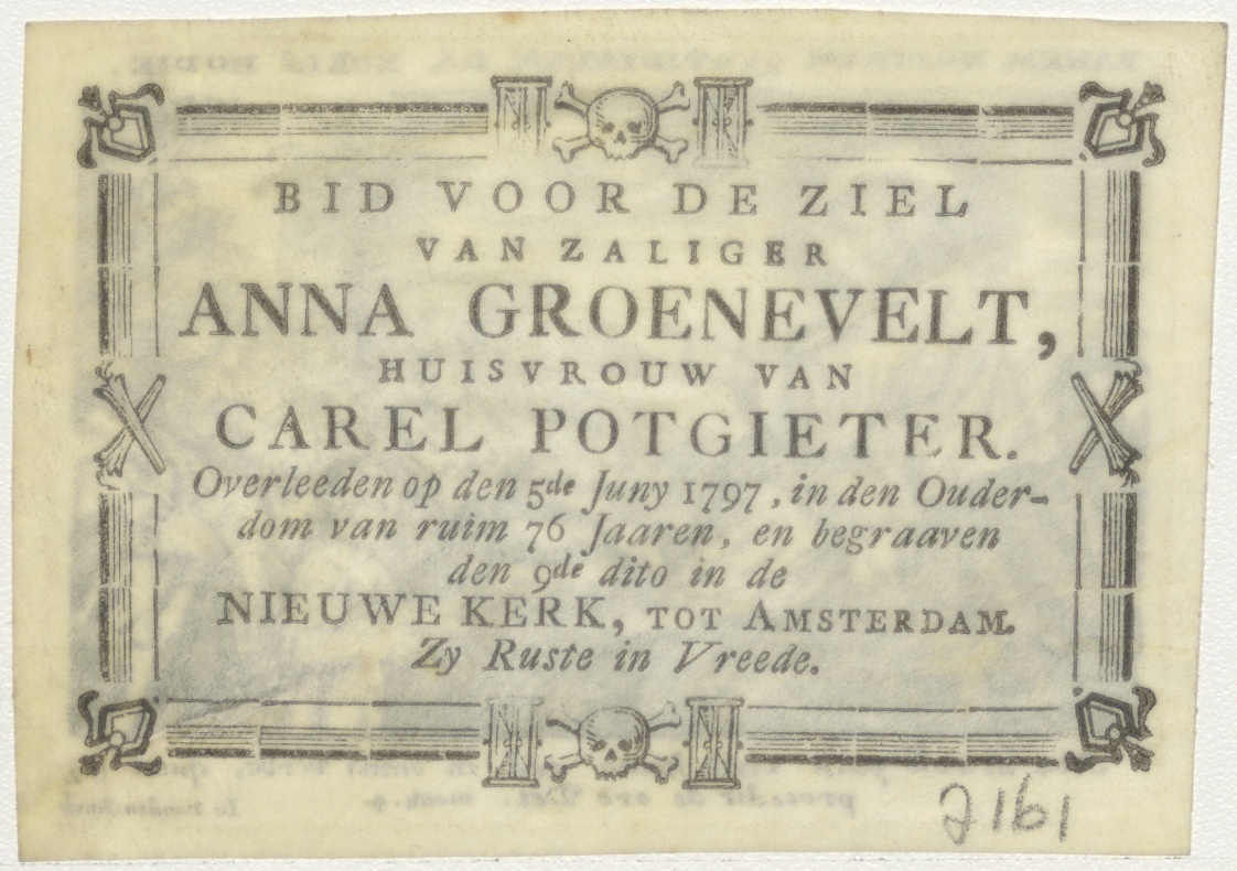 Wonder van Christus: de wonderbaarlijke broodvermenigvuldiging, kz. Bid voor ziel Groenevelt-Potgieter (+1797) Amsterdam