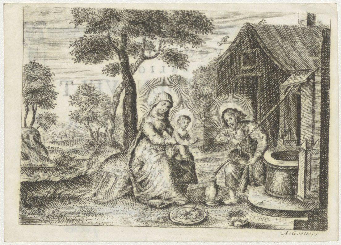 H. Familie rustend bij de put, kz. Bid voor ziel Potgieter-Groenevelt (+1797) Amsterdam