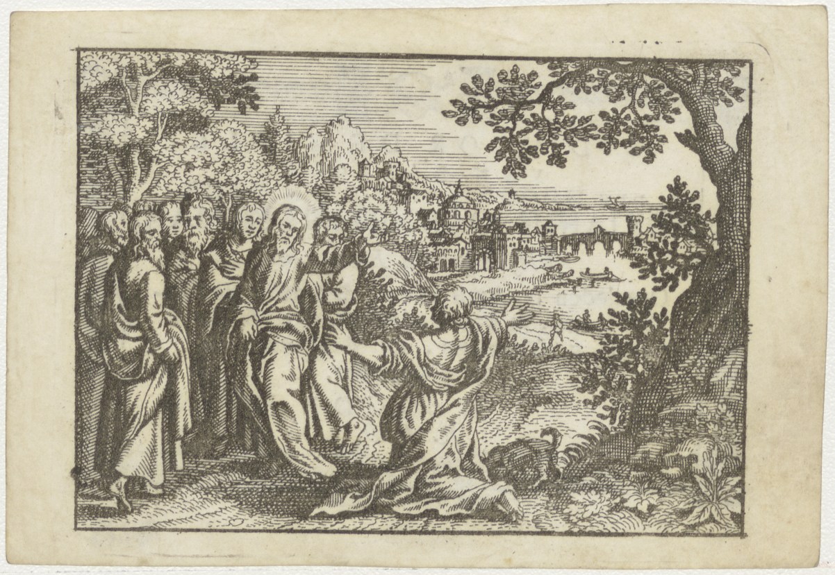 Christus met vrouw en hond, kz. Religieus; bid voor ziel Adrianus Broekman (+1800) Bisschop van Haarlem, overleden te Amsterdam