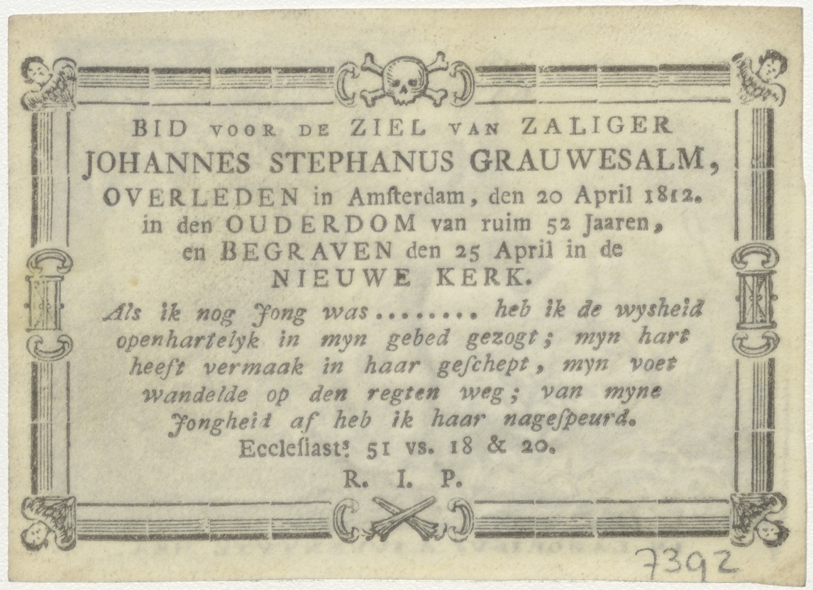 Christus als jongeling met Christus, kz. Bid voor ziel Grauwesalm (+1812) Amsterdam