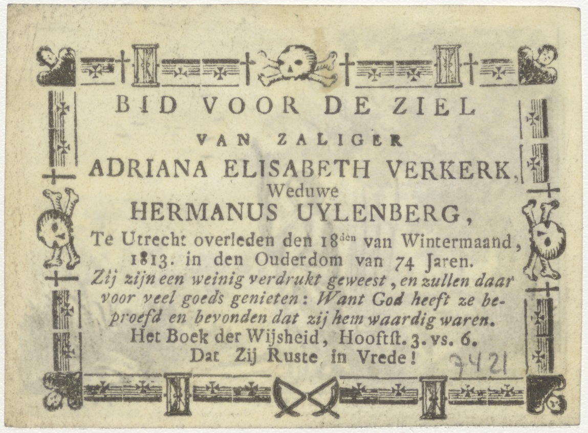 H. Agnes, kz. Bid voor ziel Adriana Elisabeth Verkerk-Uylenberg (+1813) Utrecht